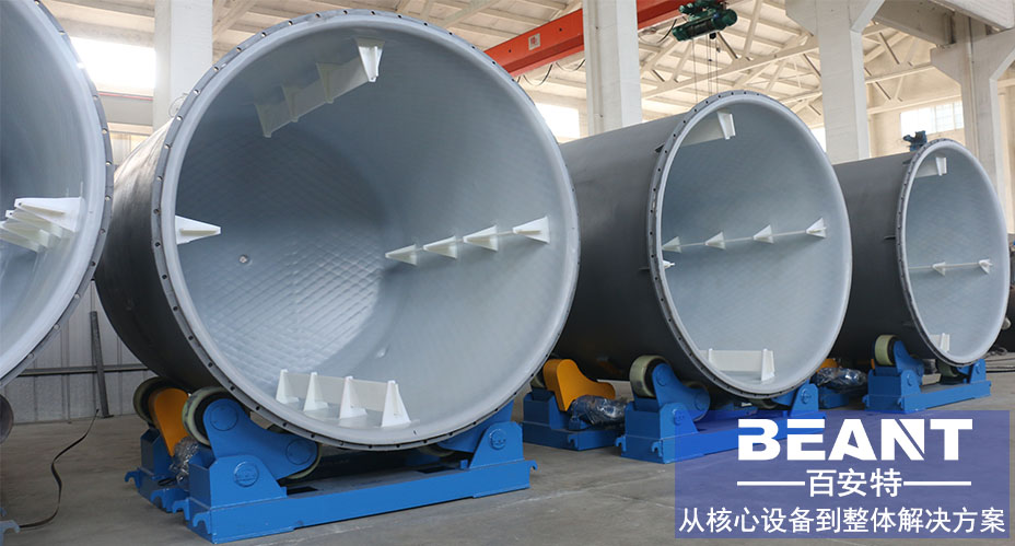 此項(xiàng)工藝技術(shù)為一種旋轉(zhuǎn)燒結(jié)成型的工藝,而該項(xiàng)工藝實(shí)施的設(shè)備也是先進(jìn)的自動化控制的工藝設(shè)備。我公司在應(yīng)用此項(xiàng)技術(shù)的基礎(chǔ)上開發(fā)出雙軸線旋轉(zhuǎn)成型工藝(雙軸線旋轉(zhuǎn)成型是由于被制造設(shè)備在制造過程中被夾持在一個旋轉(zhuǎn)體內(nèi),而該轉(zhuǎn)動體使被制造設(shè)備呈兩個軸線方向同時(shí)轉(zhuǎn)動,最后制得的設(shè)備的工藝過程。)滾涂工藝為整體一次成型,無開裂、無滲透,內(nèi)襯層與鋼基體之間的粘合力強(qiáng),當(dāng)設(shè)備處于負(fù)壓操作條件下,不會使襯里層被吸癟或被剝離金屬基體表面。