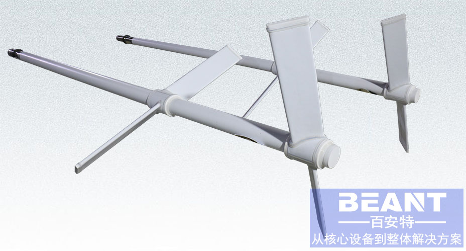 3、槳式襯四氟攪拌有平槳式和斜槳式兩種。平槳式攪拌器由兩片平直槳葉構成。槳葉直徑與高度之比為4~10,圓周速度為1.5~3m/s,所產生的徑向液流速度較小。斜槳式攪拌器的兩葉相反折轉45°或60°,因而產生軸向液流。槳式攪拌器結構簡單,常用于低粘度液體的混合以及固體微粒的溶解和懸浮。